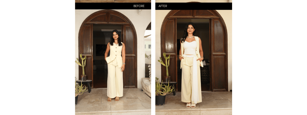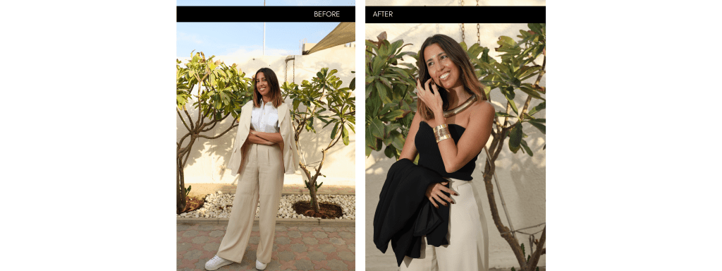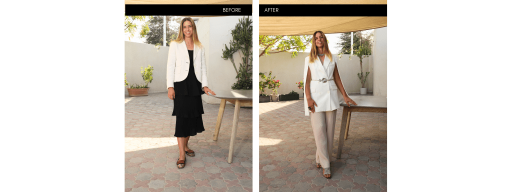 It depends on your goals. Some clients work with Genny for a focused capsule wardrobe or a specific event, while others prefer a complete transformation over several months. Everything begins with a strategy session to define your pace and priorities.